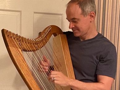 David is a 2023 graduate of the Bedside Harp Program and currently serves patients at Northside Hospital Duluth and Glancy Rehabilitation Center. Also a yoga instructor, David founded Sun Dragon Yoga in 2015 to focus on the 55+ community and restorative yoga. When not at the hospital or on the yoga mat, he can be found writing and recording songs with his 'punk folk' band, Sour Circuit.